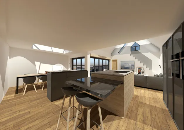We've been working on an extension to a cottage in Corfe Castle recently, and to help the client visualise the space, we've created some 3D internal visualisations, including finishes and furniture.